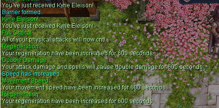 Kyrie EleisonGrants you a magical shield to block incoming damage. Bless up.