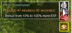 Introducing the Race of the Day system โ where each day, a random monster race is chosen to give an extra EXP boost. So if today is Formless Friday, those spooky blobs and goos will reward you more for every smack you land.
