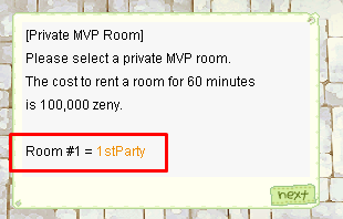 | Party Room | Shared room for your party | 100,000 Zeny |